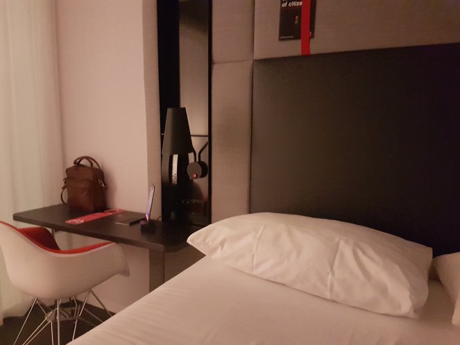 So chose CitizenM. Great. Perfect. Japanese efficiency with Italian and French style.