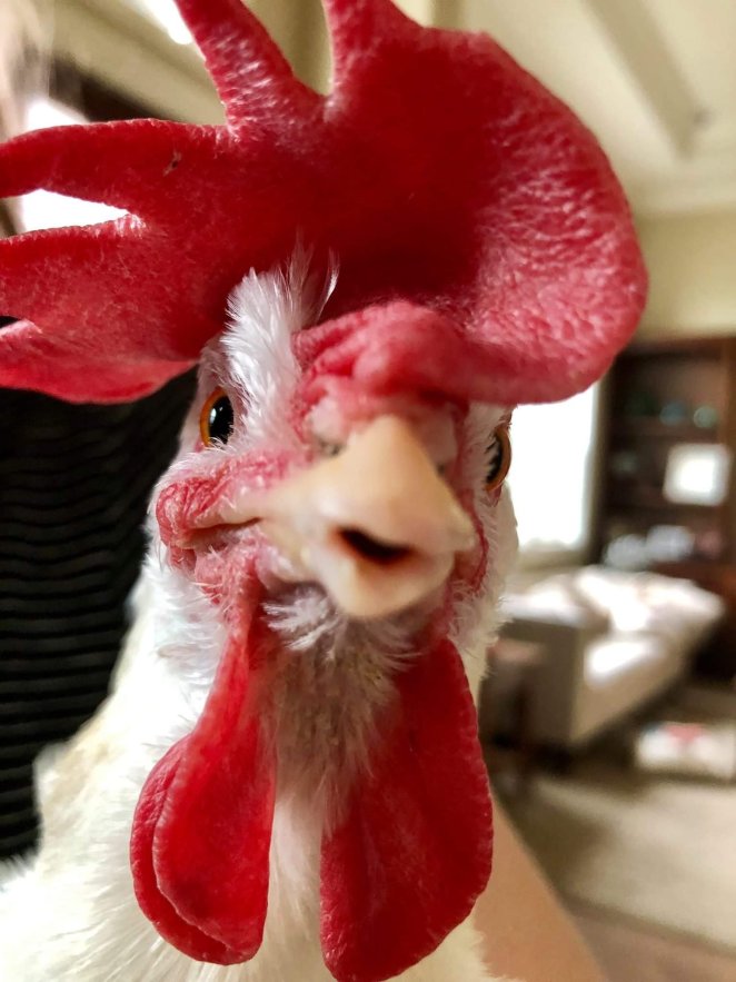 Sometimes we do slightly zany things in life. Coming to France seemed a little zany at first, but now I am settling and the benefits of being in this wonderful countryside surrounded by cow’s and mountain pines and oaks, well it seems the most sensible of decisions in reality.I have always tried to support charities. Mainly animal charities and those pushing to bring about changes in welfare and farming methods.Having now my own chickens and three mad geese, I feel even more in tune with how important it is to care for your livestock and above all kindness to give them when you can.In the UK ex-battery hens are rehomed on a regular basis. The sad 18 month life of an egg layer in cages is downright terrible. In fact I would go as far as to say criminal. It’s murder on a huge scale once the poor girls cannot lay anymore.I would write a gruesome eulogy here but this post is about hope. Re-homing chickens in France is quite new thing and I am lucky to have ours near Aubusson. But I also support a few UK charities too. Recently I purchased fencing for an extension of a 1000 chicken rescue holding field. Having some available funds meant that although as yet I haven’t set my own rescue coops and runs up, I can do the next best thing. The charity was struggling with housing and being able to solve it got me thinking. Now I am no Bill Gates but having trawlers the internet I find I can make a difference on many small projects. The internet does good sometimes!So to Funky Chicken. A daily visit on Facebook brought up some charming photos of a chicken rescue charity in Northern California, Funky Chicken Rescue, in USA. Apparently Funky Chicken was a rescue chook (featured above and looking very cute) who unfortunately died too soon after being homed and a charity was formed in his memory. But simply re-homing chickens wasn’t what sparked my interest. They specialize in looking after disabled chickens, ones needing rehabilitation, ones with crossbills and blind chickens. With over 100 to care for and many as a forever home, the charity needs sponsors. I loved the idea and this week I have chosen to sponser: Peppermint, so adorable….And Fancy, who came from a ranch that burnt down. Now those are impressive colours.Belinda, from the same ranch lost her feet in the fire and the charity is caring for her and getting her back on her feet so to speak through operations and chicken wheelchairs.Her boyfriend, Bennie adores her.It seems a long distance to North Carolina but I love what they do and the internet worm holes distance to zero.Enjoy this lovely video. Chicken love on a daily basis makes the world a happy place!❤Funky Chicken cuddles for blind cockerel