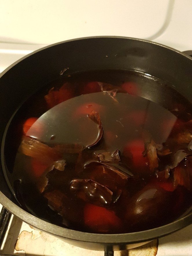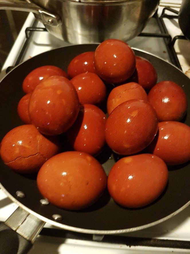 The French celebrate with the red dyed eggs as we do in Romania, and with chocolate eggs as back in England. Today we dyed our eggs with red onion skins and let them sit for a good few hours to take on a rich ox-blood red. Tomorrow we will eat them with mustard and a small prayer of thanks said. We are not religious but it’s still a good time to set aside a few days to think about how good life can be and say thanks for health, friendship and a good future.