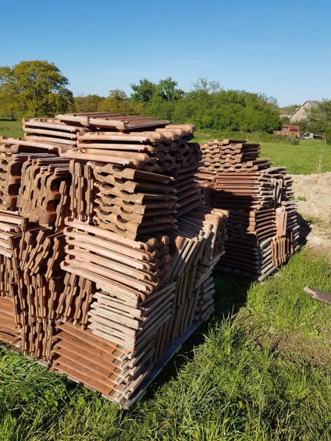 The old oak beams had rotted in some places and were replaced by pine to ensure the roof was laid straight. It seemed a shame but practical. The oak will be reused for our new chicken barn. Hang on..more chicken housing!