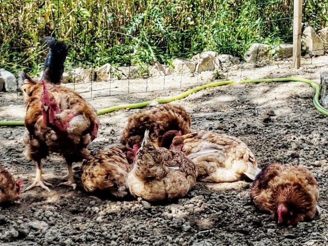 The lack of rain isn’t bothering us at the moment. Having saved all the spring rain in barrels, we are getting by ok. The chickens love dust bathing to have a good itchy scratchy and we make mud patches for them to soak their feet and hunt for worms. The geese drill down in the mud to filter stones and everyone’s gets, well, muddy happy!