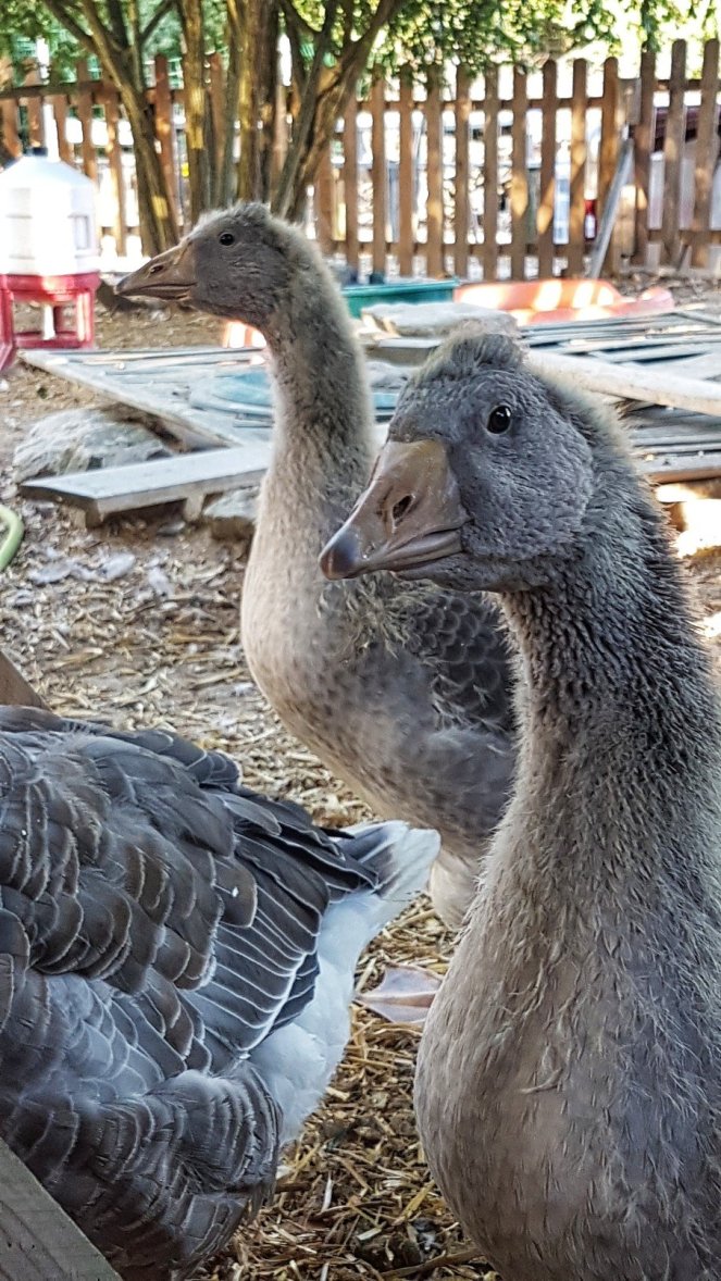 Pecan and Cashew are getting all feathered up. And the tufts on their heads look just like daddies!At that dirty grey stage. Ugly ducklings who will turn into beautiful swans..no I mean stroppy, demanding, clumsy, geese. Now we will have five rubbery footed guys yelling at us instead of just three.