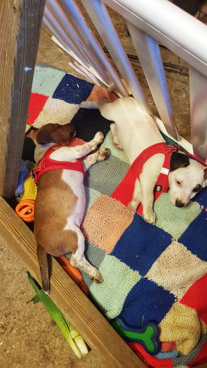 We move alot between properties and there are times when we can’t walk the dogs. They need to have the energy to run with our bikes and the enthusiasm to play together when we work. Small enough to take in our campa-van and easy to carry. I don’t want to have to dish up a cow’s worth of meat everyday either. Jack Russell’s just fit. I also love a bit of naughty attitude and rogue behaviour. Bit like us. Not perfect but we are enthusiastic.