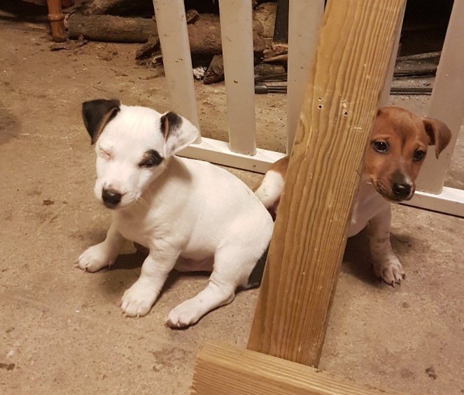 Bred around 1790’s they are an old English breed mainly white to differentiate them easily from the prey they used to hunt. Reverend John Russell perfected the colouring and breed and thus they take his name. Sake (My husband used to live in Japan, hence the name) is traditional white with a few dark patches and an especially cute one on his eye like Bullseye had in Oliver Twist. Bella is Tri-coloured in tan, white and a little darker brown which manifest in just a dot on her tail..her on/off switch as I call it and nose. She also has freckles or naughty spots.