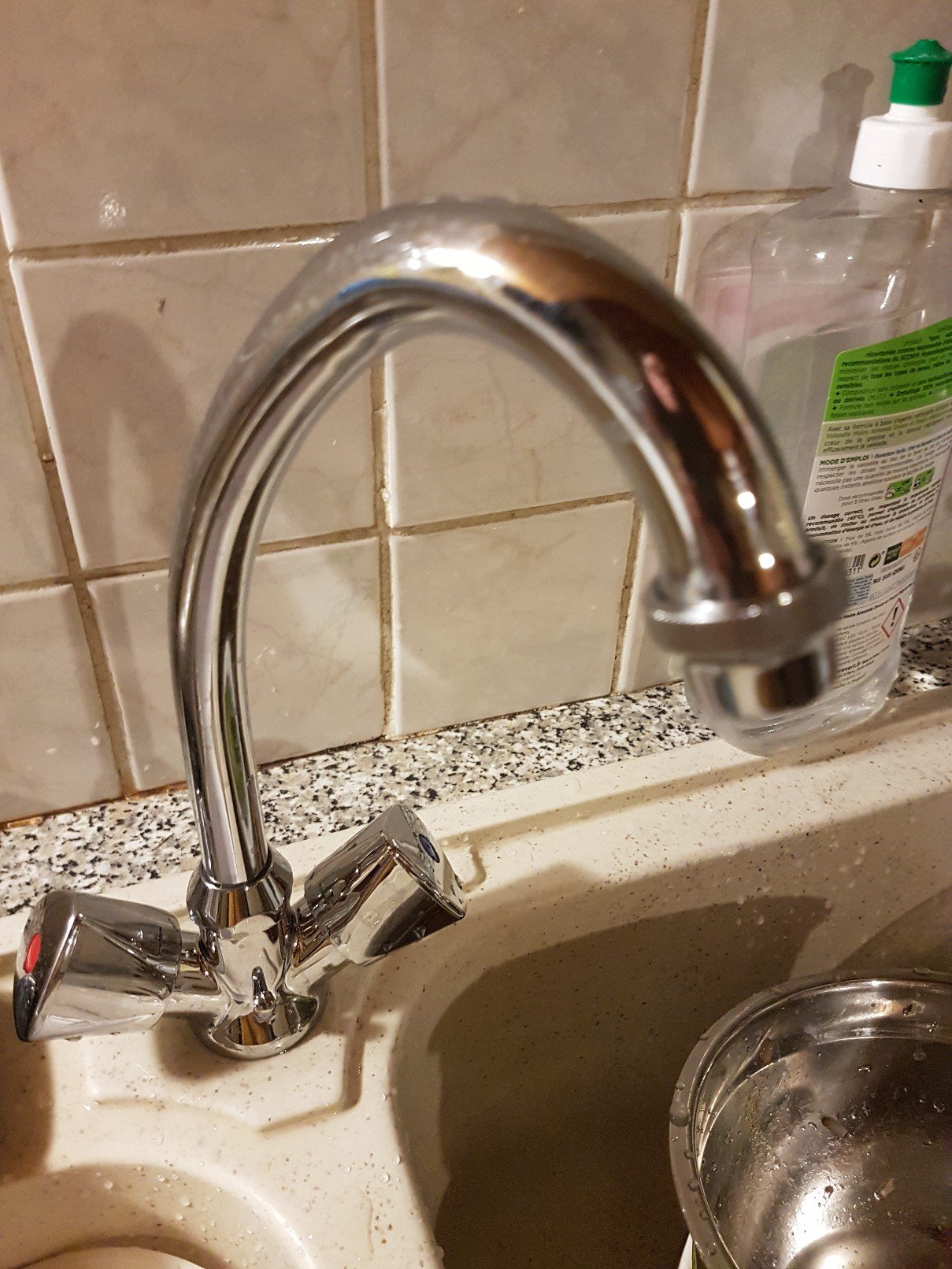 A design original! After buying the farmhouse the kitchen tap lasted a month. It broke in two! This amazing replacement design of ours featured a simple rocking motion to turn on water. Couldn’t adjust temperature but when in France and renovating you get used to temporary things.