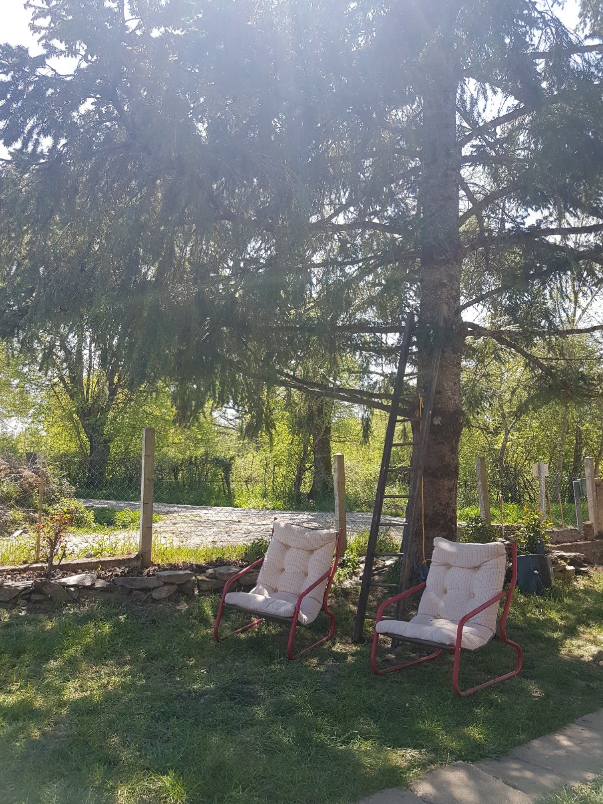My husband comes from Transylvania and was a regular mountain walker with his father. The local hikes on Carpathian routes of Buila, Cheia, and New Years up in Valeanuin to imerse in the deep snows, were an escape from communist restrictions in the 70’s and a chance to grab international news on the illegal radio. The little wooden hut and the days track up through the pines printed an indelible memory in my husband’s brain. He wanted a house with pines, trees and hills. As we drew up outside the farmhouse and the agent, Bridgette, excitedly explained about rooms and garages, we had already said yes many times. The huge pine said it all.