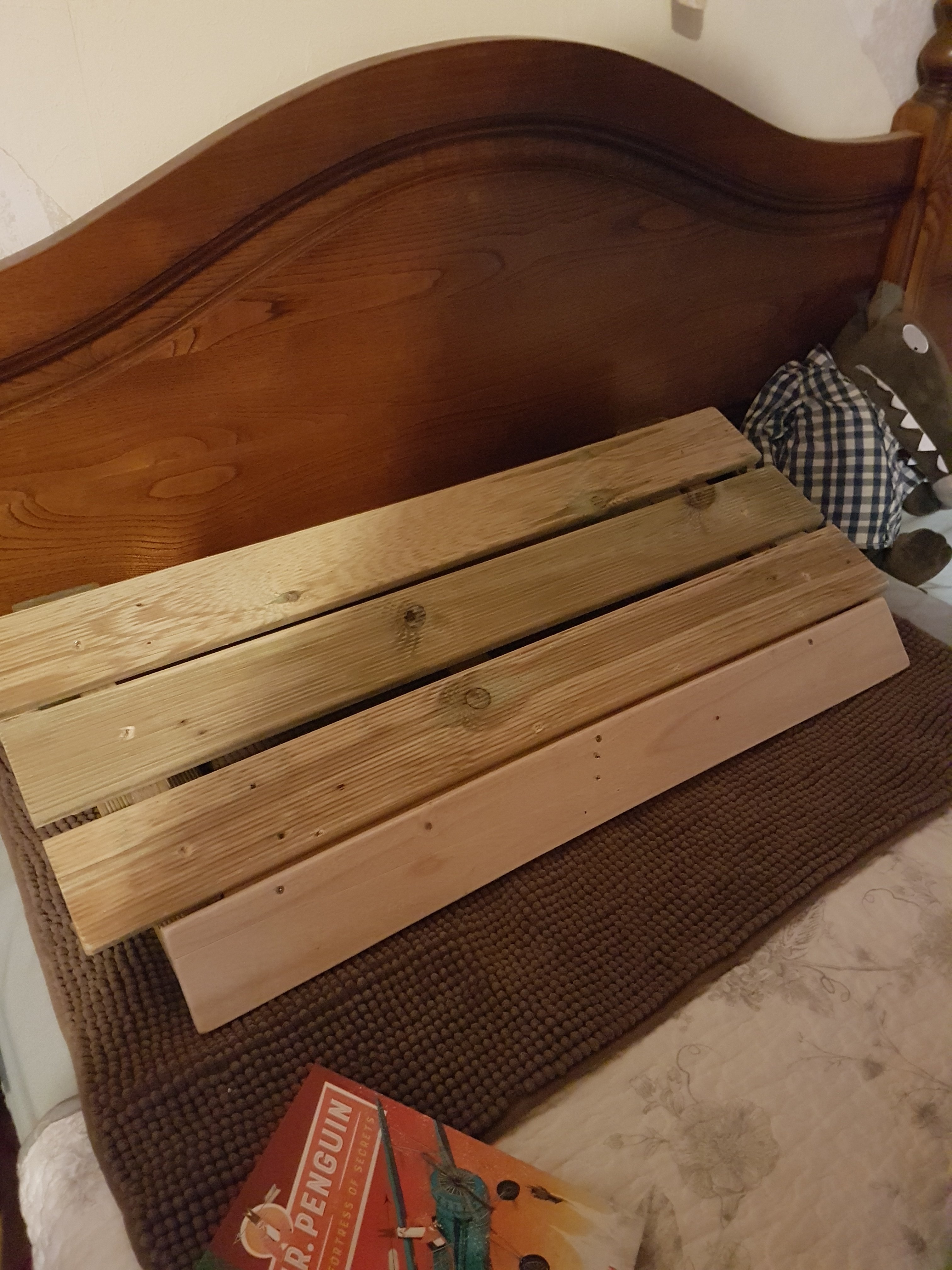 And that’s the wooden pillow support. It has turned out to be better than anticipated. It’s helping my back as my neck and head are better supported and supports my shoulders if I need to sit up more. Sometimes a radical approach solves everything.