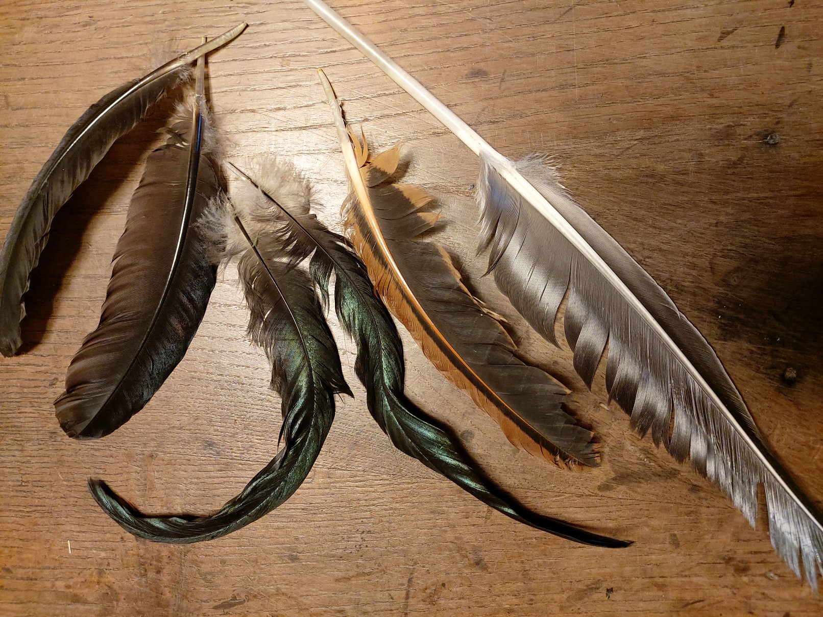 The larger feathers I do keep, as these were hard work to look after, grow and loose. Beautiful structures. A reminder too of others who are no longer here and have flown over the Rainbow Bridge. Happy memories.