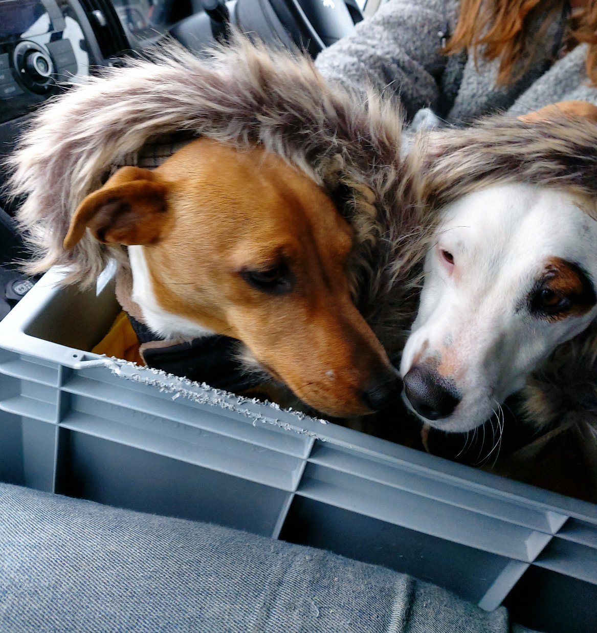 Currently they are sleeping while Tony looks for a phone at Leclerc. Two slices of dinde (turkey in French) are being digested and once home, it will be another snooze in blankets by the fire. It’s a dogs life but a very comfy one. Shove over guys….I want to share that basket.