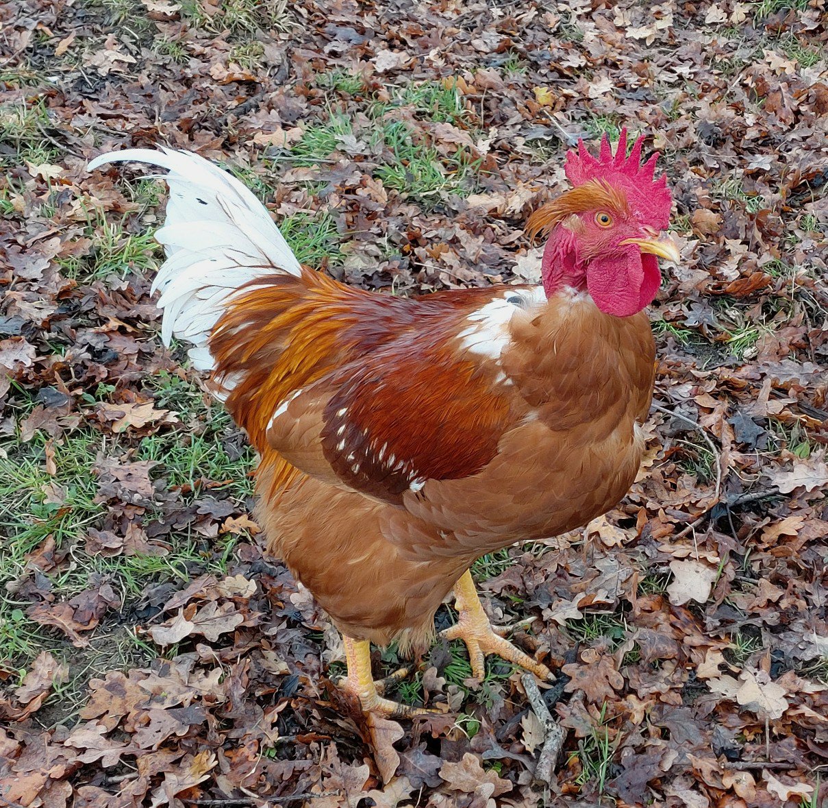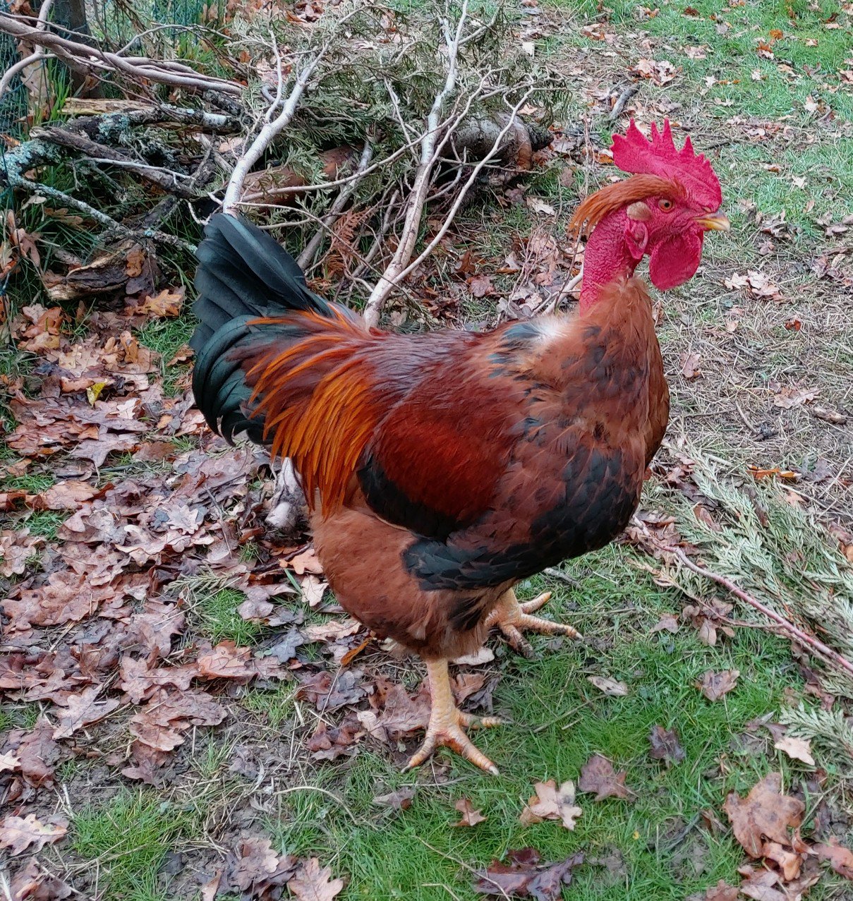 Ferdinand loved a cuddle. Cuddling a cockerel is special as they generally have bad reputation that is totally unfounded in my case. Boys are nervous, anxious and have a job to do, guarding their girls, so sometimes you are seen as competition. Flogging, that is hitting or grabbing your boy by his feet and hanging him upside down, is cruel. It wont work. Honestly its ridiculous. Respectful distance, slow movements, and regular time with your boys works. If you pick up one of their hens, make sure he can see her and you acknowledge him first. I now have nine cockerels and we all for on fine.