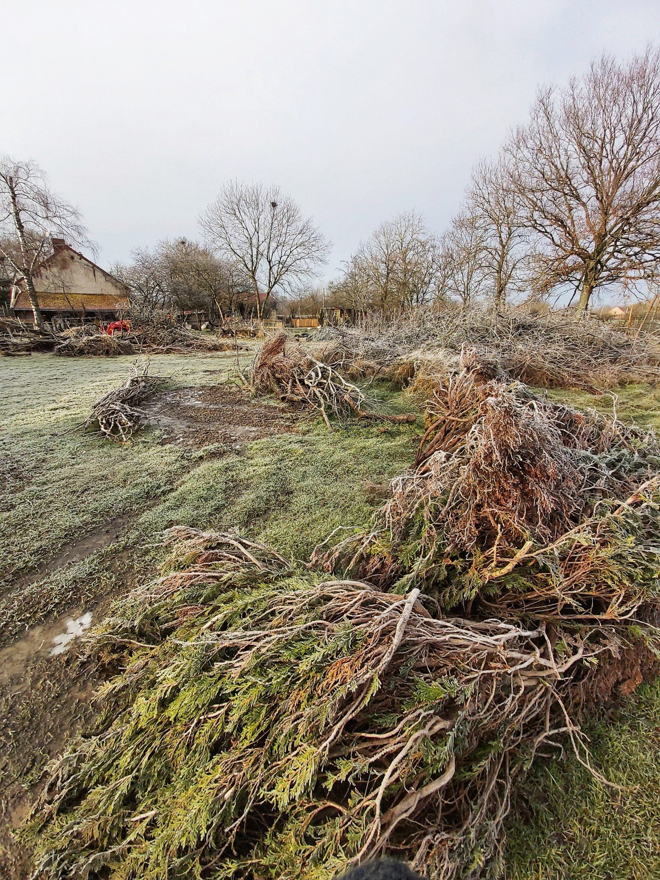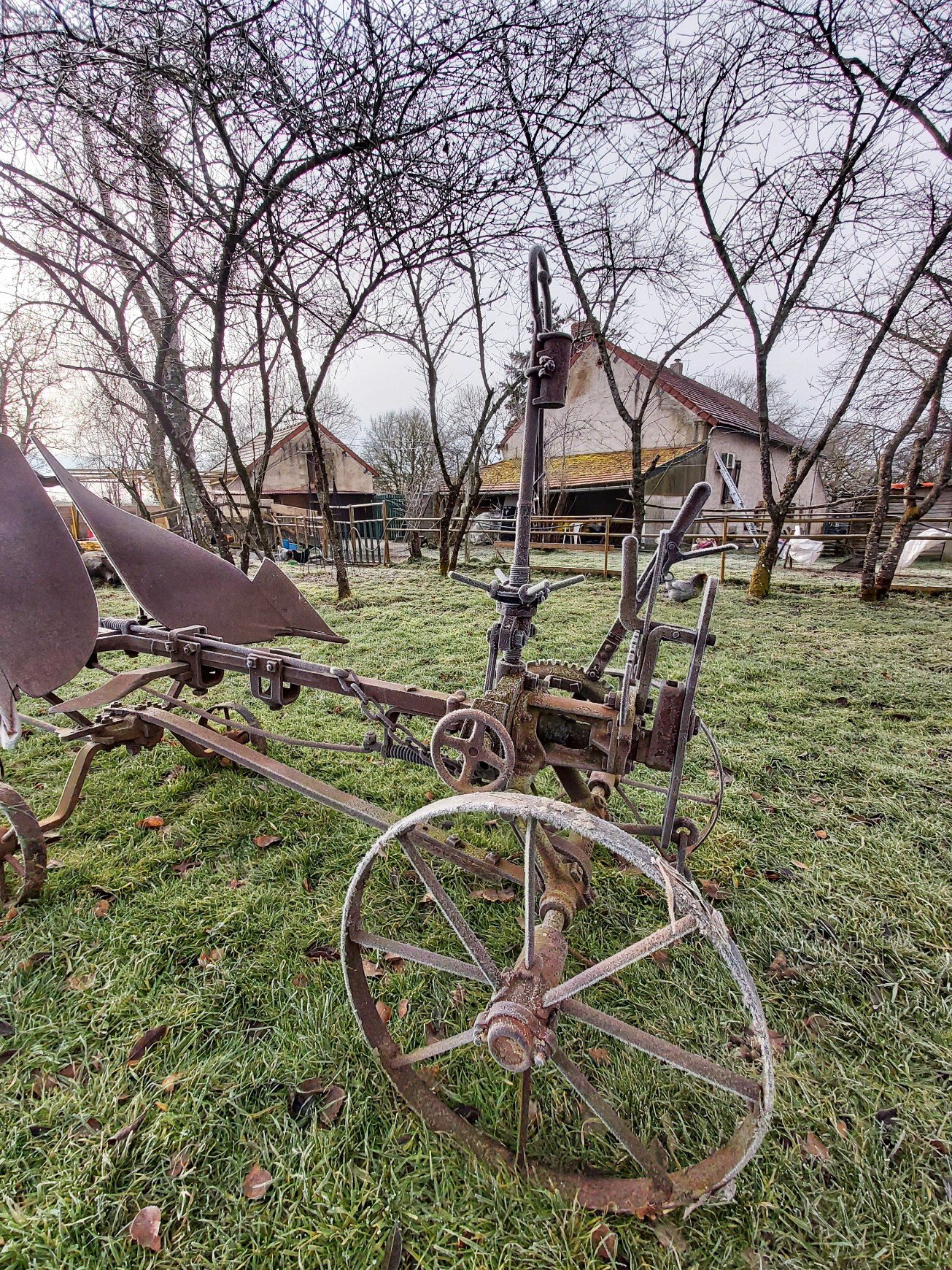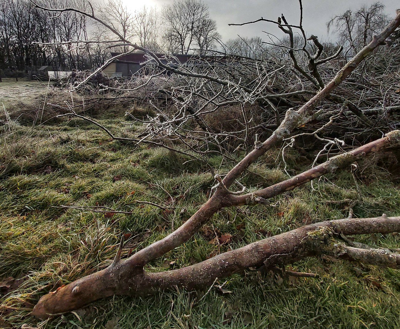 This morning was a sharp, crisp take your breath away chill, but the sun was peeping dramatically between the thunder clouds and that meant camera time. Saturated greens and greys and white frost crystals made the shots relatively simple. I went wide angle to stretch the perspectives more and gave a minor contrast tweak in Snapseed.