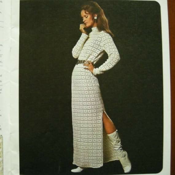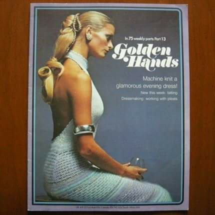When I was just 5 years old I used to dream about owning these knotted and crocheted dresses and glam silver shoes. The dresses looked sexy even to my young head but I wa very creative even back then. I collected cigarette adverts, fascinated by Silk Cut and cosmetic brands. The dresses came from the famous Golden Hands magazines my mother collected. She didn’t make anything from them and eventually threw them away…how I wish I had them seeing as I collect retro magazines.
