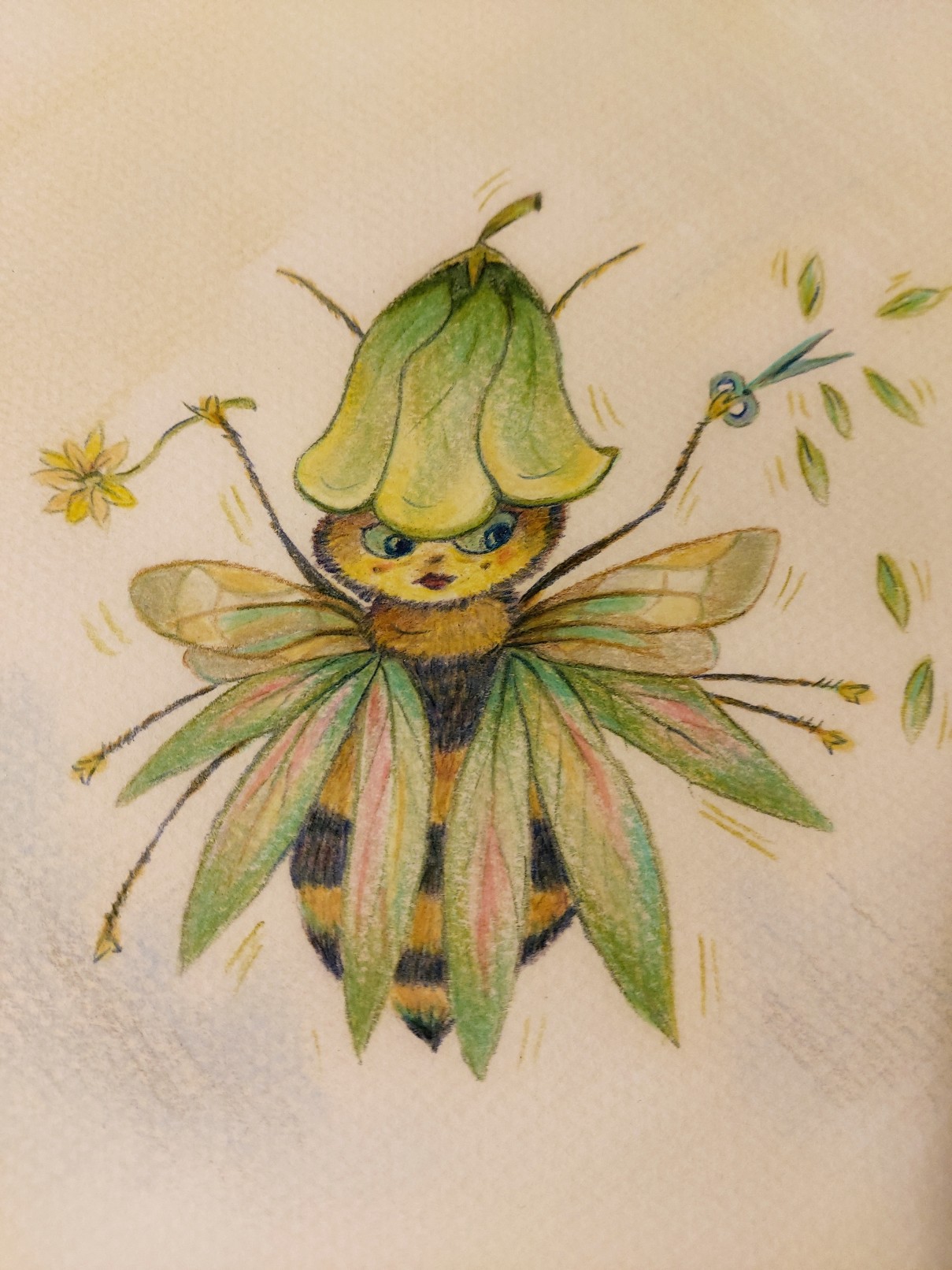 The bees were part of the story and three were almost complete, in that I felt they worked as being recognisable znd friendly, not cartoon, not digital, not botanical specimens.