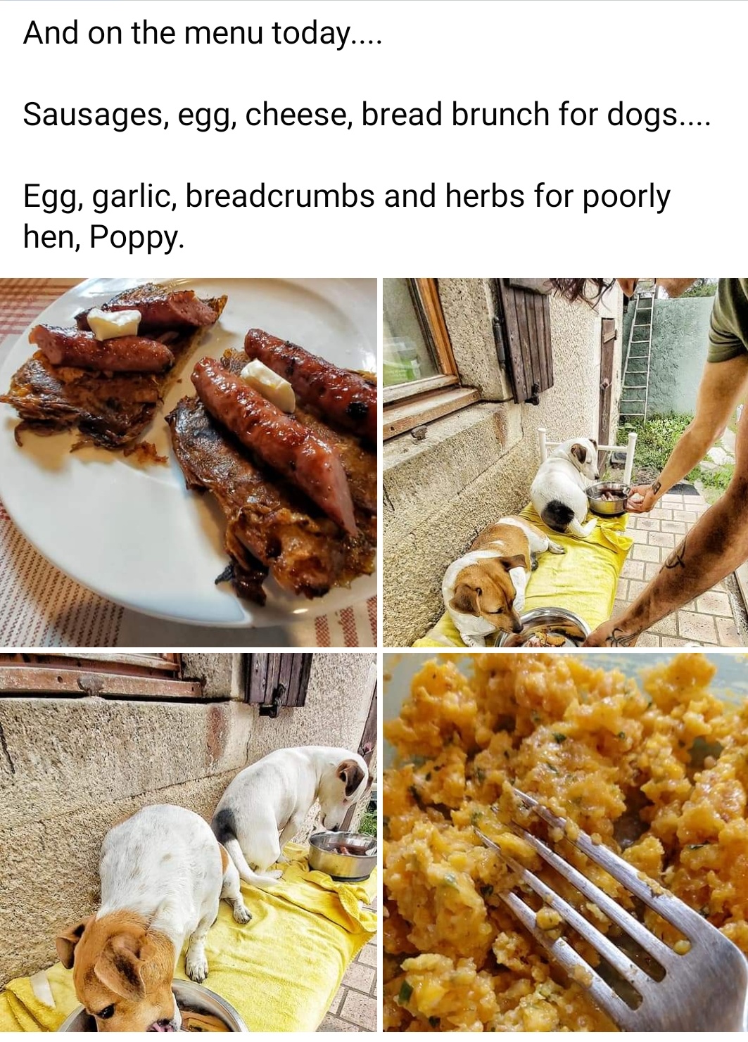 So now it’s bit of a game, who eats their sausage first, or who can try and eat the other ones sausage, secretly, or hide theirs to bring it out later and show off! Lots of jealous driven strategies in the hound dog world and for Sake our male, white Jack Russell, it can be a whole afternoons task. He even has a special expression for it, a long face, half closed eyes with slightly raised eyebrows.