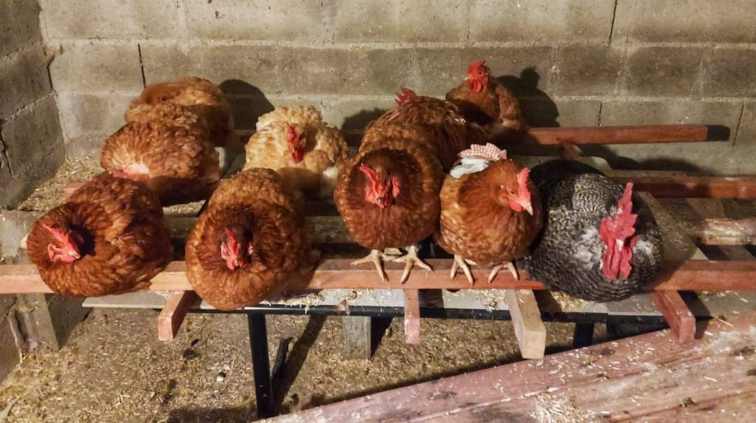 A recent post on Facebook perches prompted me to do a quick post on my perches. . There are a lot of different types and views on perches and after keeping chickens now for three years, I realized the old fashioned idea of round perches, like a thick broom handle, were wrong. The girls suffer tendon and joint issues trying to balance. In winter they like to hunker down with their feet flat and covered with their bodies, feathers fluffed for warmth. If they trued on a round perch, they’d simply tip backwards and fall off!