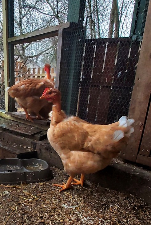 The bird was trying to enter our coop, excited by the prospect of meeting a flock of hens and was doing his upmost best to show off, strutting, twirling in circles and stomping his feet. I tried to push him away only to find there were two! After a short few unsuccessful minutes, another appeared! My hens by now had also gathered something was up and like me found these huge dancing cockerels a little intimidating.