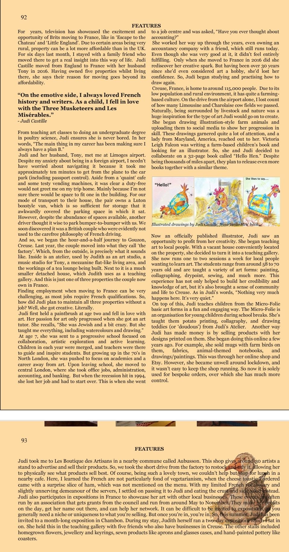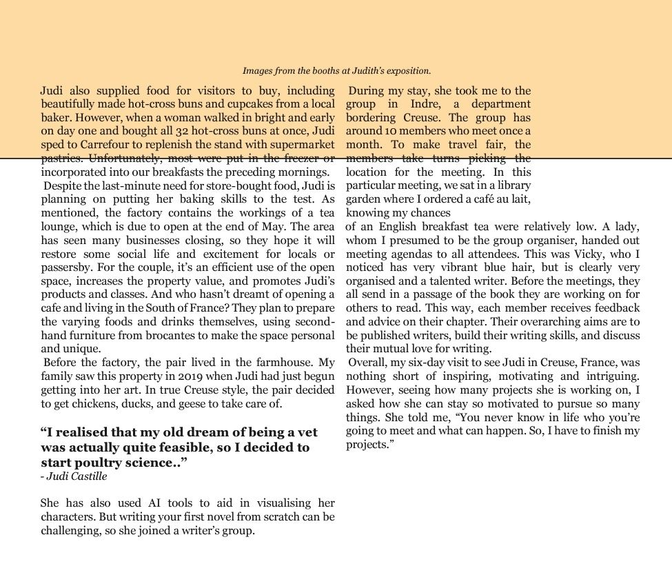 A lovely article by my tax business partners daughter, Alix Marshall. She is working through a degree in journalism back in UK and she visited last month to dip into my world and my journey to France.