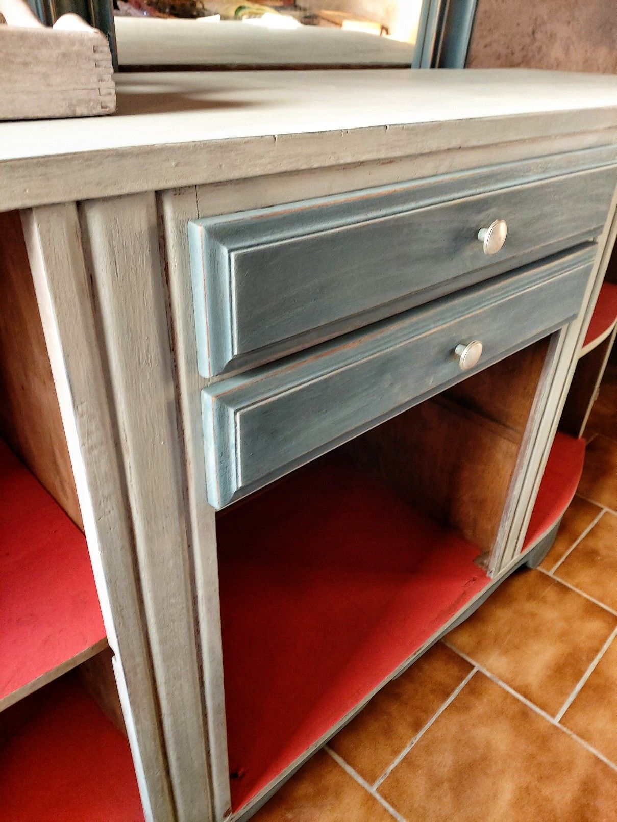 I have an atelier in Gouzon, France from where I teach art, illustration and paint techniques to change the look of a piece of furniture or enhance its existing decoration or patina.