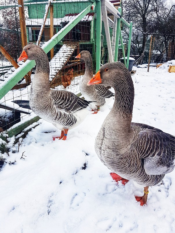 Snow finally arrived. The geese love it. Living inside your own goose down duvet makes you cuddly and ready for a big goosie hug! Bonnie doesn’t mind a bit. Orange feet go a little pinker in the snow but the girls seem oblivious. In fact it seems they tried to footprint every snowflake in sight!… Continue reading Snow geece