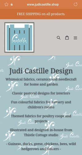Welcome to my online shop Thistle Cottage https://www.judicastille.shop where you will find products, fabrics and illustrations inspired by my flock of geese, chickens, ducks and guineas, my homestead life in France and the surrounding meadows and woodlands. I ship Worldwide for Free. All products are designed be me and where possible printed at my studio. Fabrics are printed in Germany, England and Poland. If you love needlepoint and cross-stitch there will be designs that can be downloaded or printed on canvas.